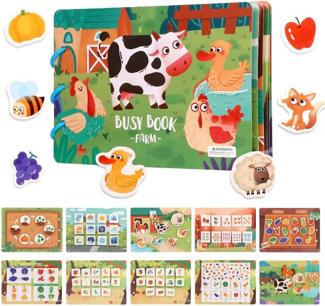 ¡Haz que aprender sea una aventura! Este libro interactivo con temática de granja ofrece actividades interactivas y adorables ilustraciones para que tu pequeño explore animales, colores y más. ¡Ideal para mantenerlos entretenidos y aprendiendo sin pantallas!